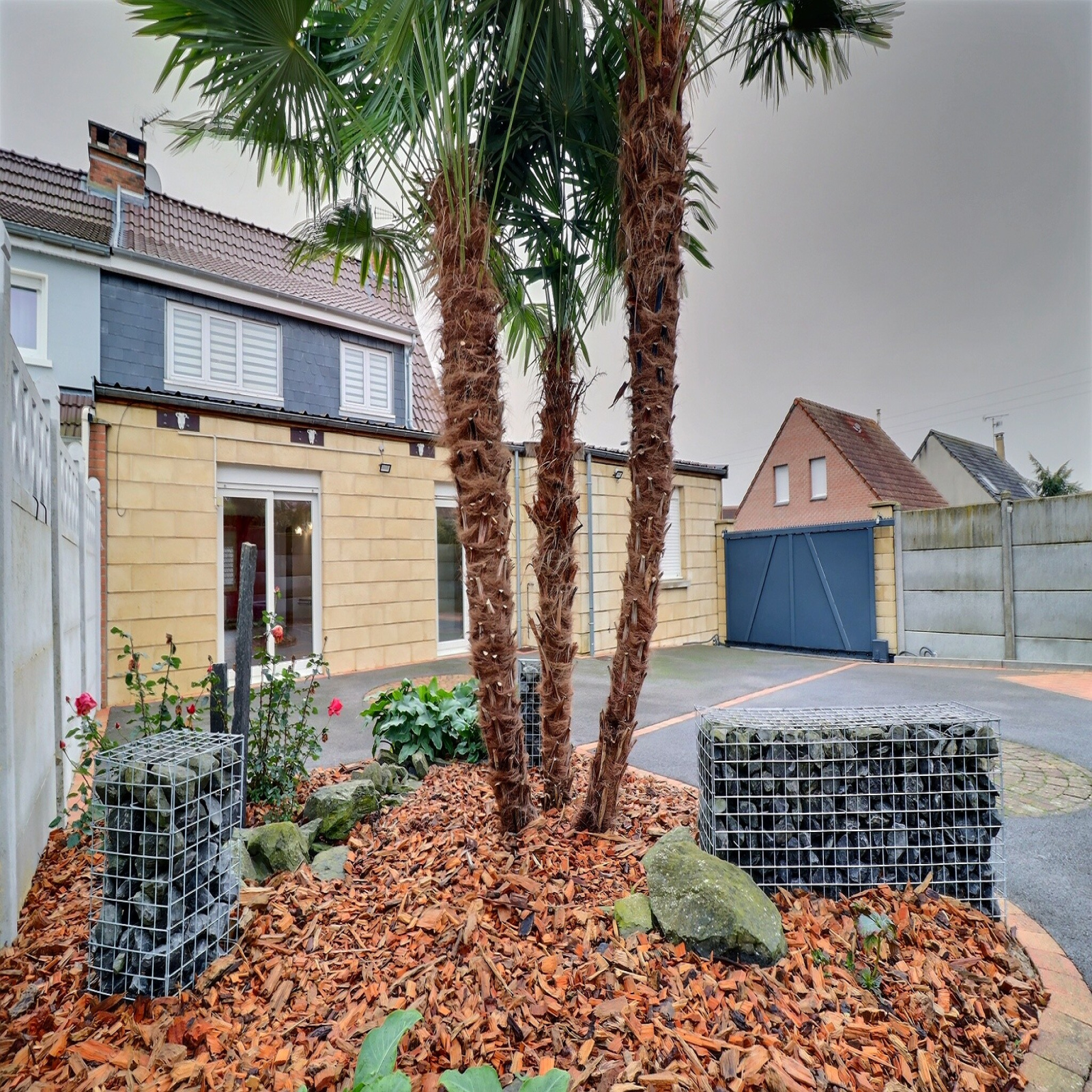 Pour les extérieurs grande terrasse de 100 m² pouvant aussi servir se parking pour 3 voitures avec portail éléctrique
