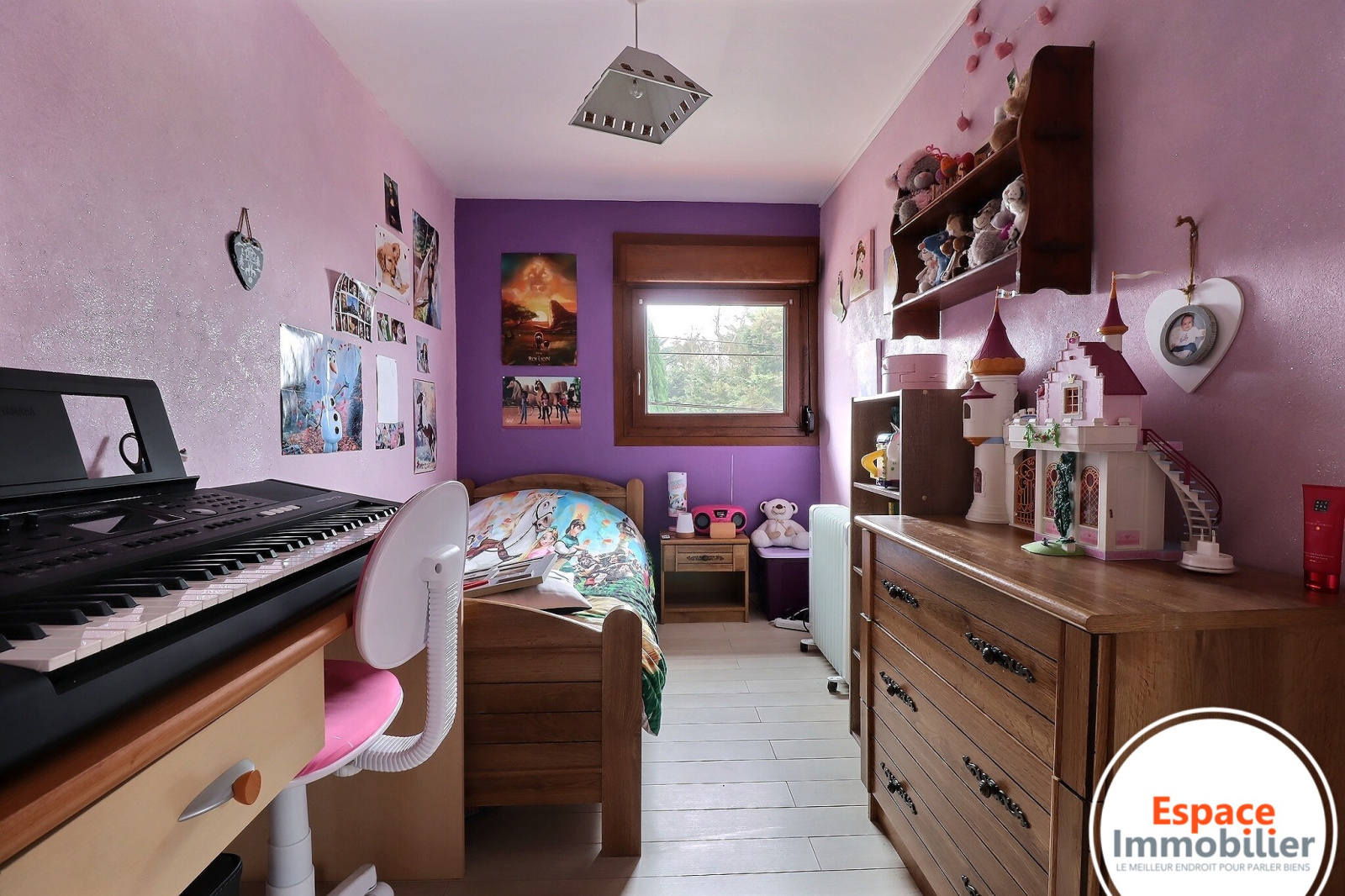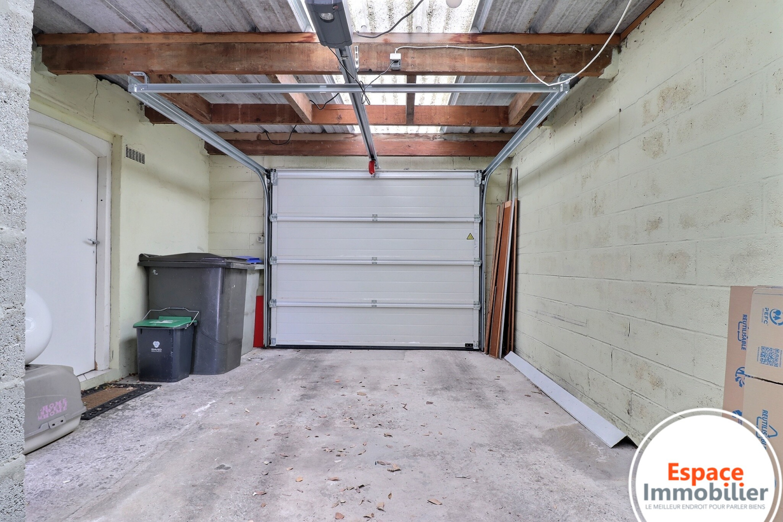 Cette maison est équipée d'un grand garage avec pièce de stockage, d'un jardin avec terrasse, et d'une cave.