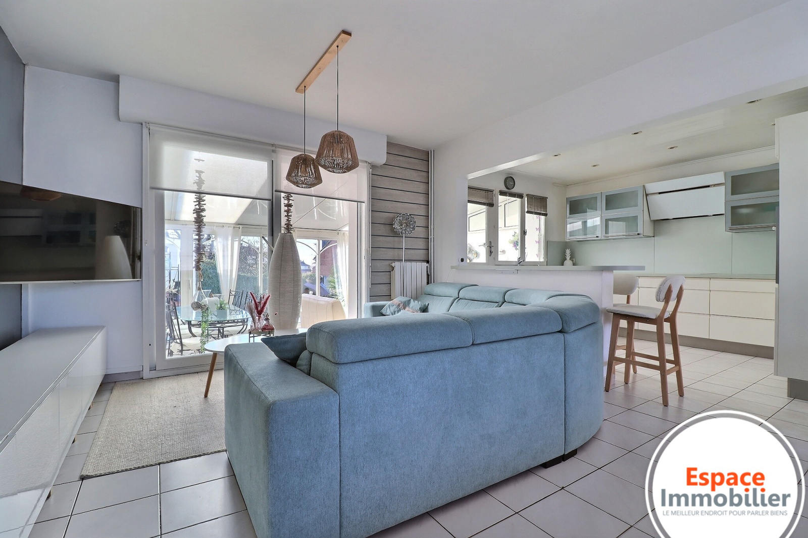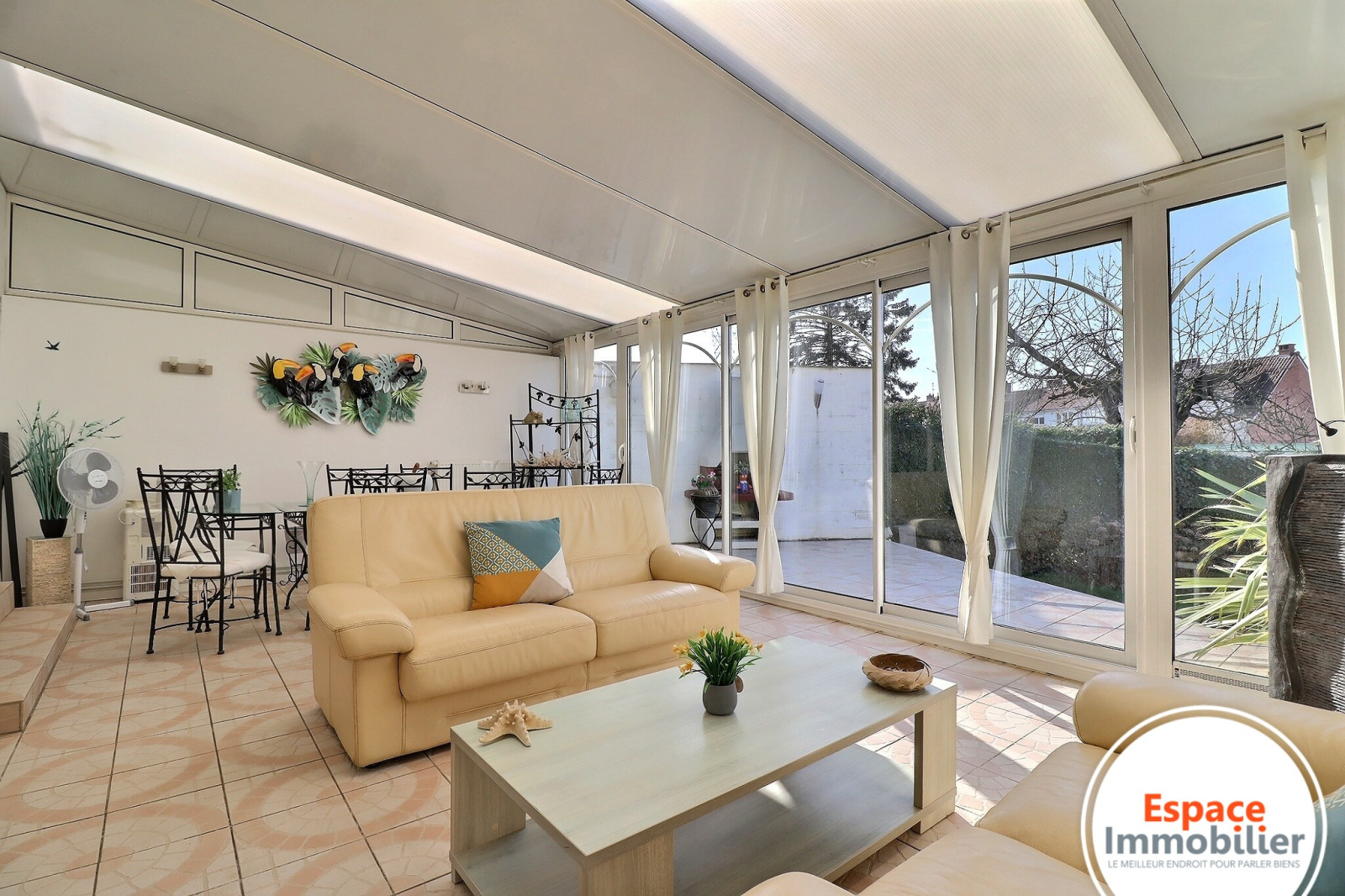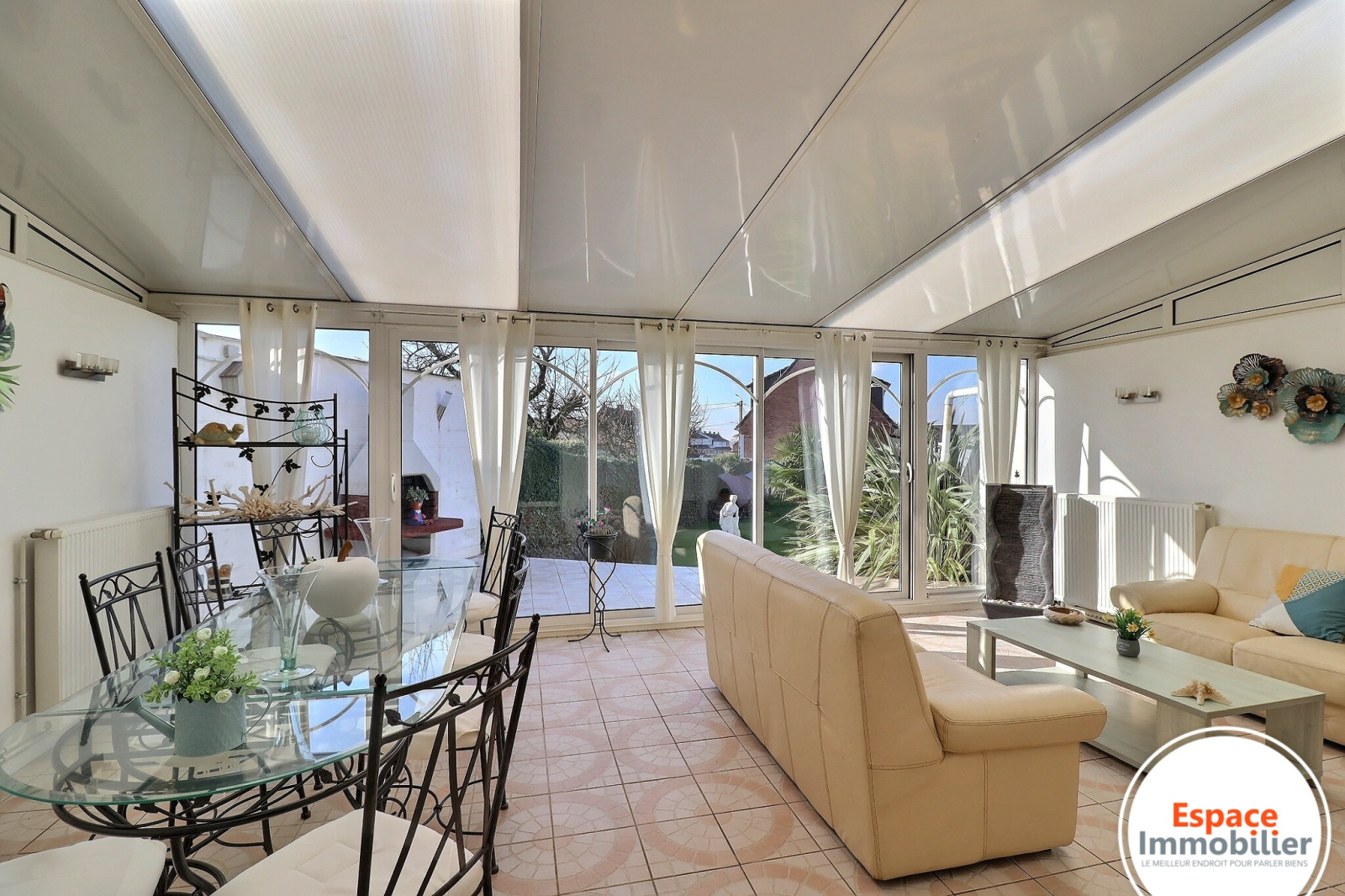 Prolongez vos moments de détente dans la véranda de 30m2 chauffée, une véritable pièce supplémentaire baignée de lumière, utilisable en toute saison.