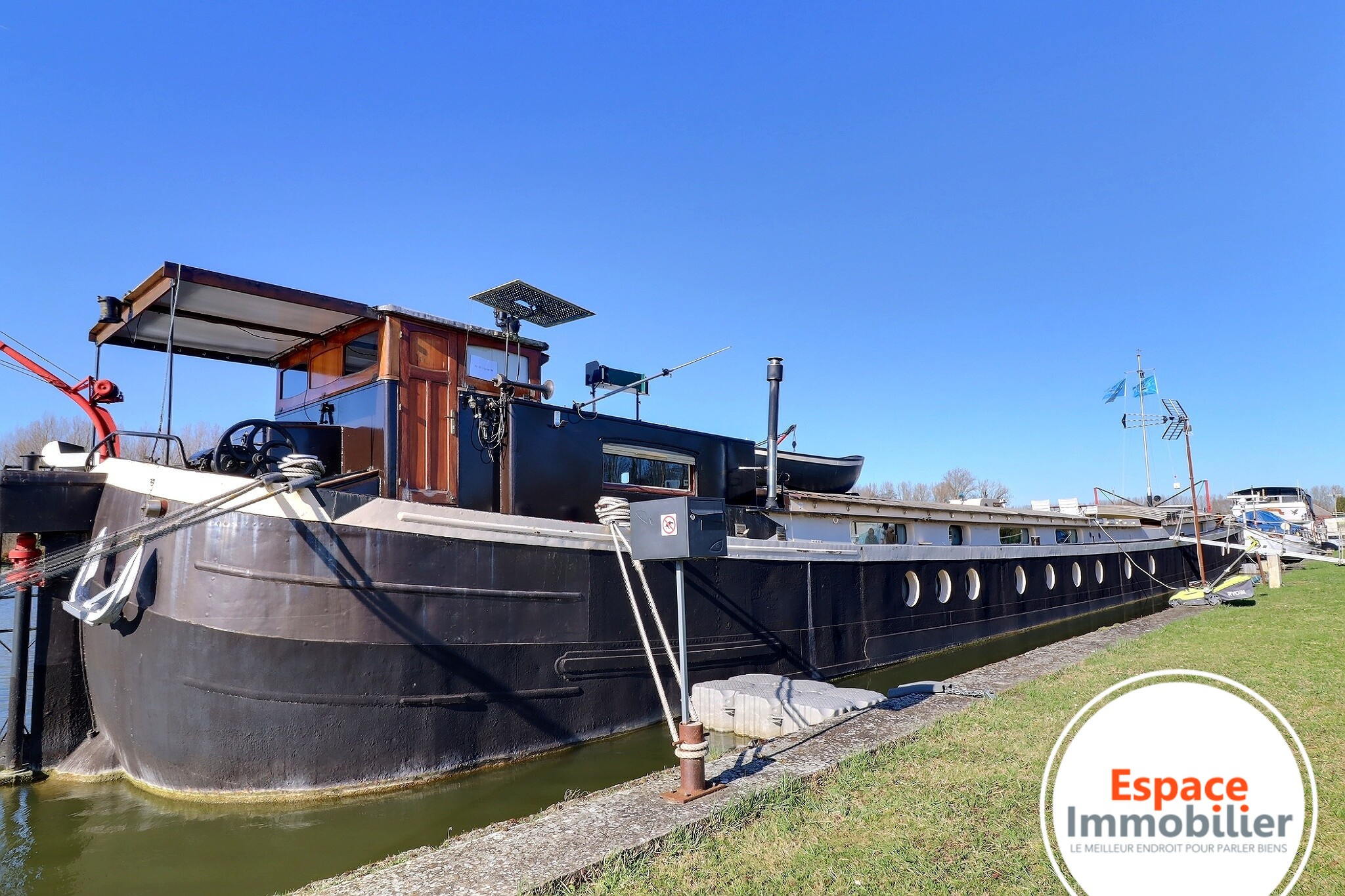 Vivez l'histoire fluviale à bord de cette unité d'exception, alliant héritage de 1914 et confort résidentiel moderne. Construite au chantier Naval de Baasrode en Belgique, cette péniche de 39 mètres est une perle rare.Entièrement autonome et prête à naviguer, elle a été transformée avec passion en 2004 tout en préservant son âme. -Un Intérieur de Grand Standing: 200m2 L'accès principal se fait par une magnifique porte en Teck massif, ouvrant sur des volumes généreux: . Vaste pièce de vie: un espace de réception lumineux et chaleureux. . Cuisine équipée: moderne, parfaitement intégrée pour un quotidien confortable .3 chambres avec hublots et fenêtres allant de 12m2 à 20m2 dont une avec une salle de bains privative. . Coin Historique: le logement du marinier est resté d'origine. Ce coin authentique, avec ses boiseries et son agencement typique, offre un espace de vie indépendant idéal pour un bureau, une cabine d'invités ou un cocon rétro. . une salle d'eau avec wc vient compléter l'ensemble de l'habitation. Une belle terrasse de 28m2 vous attend sur le pont pour contempler les merveilles de vos prochaines destinations. -Caratéristique Techniques et Navigation: Contrairement à beaucoup de bateaux-logements statiques, cette unité est 100% opérationnelle pour le voyage au long cours: -Réglementation:certificat de navigation européen valide jusqu'au 18 Avril 2034; -Moteur GM type 6/71 de 165cv, Inverseur Twin disc modèle type MG 508 2 cuve à fuel pour le moteur de 1000L Groupe éléctrogène insonorisé avec échapement silencieux géré automatiquement à 3 endroits du bateau. Parc de batteries et chargeur de batteries Hydrophore automatique cuve à eau de 800L avec remplissage automatique installation de pompage et purification d'eau automatique Moteur auxiliaire HONDA DIESEL équipé de pompe et dynamo pour recharger la batterie du moteur. Chaudière CHAPPEE 35000 Calories avec production d'eau chaude continue Installation éléctrique industrielle. Gouvernail électrique et manuel -Les plus: L'emplacement est libre pour les futurs acquéreurs Aucun travaux à prévoir, même dans plusieurs années Ce bateau est vendu clés en main. Pas de dpe .